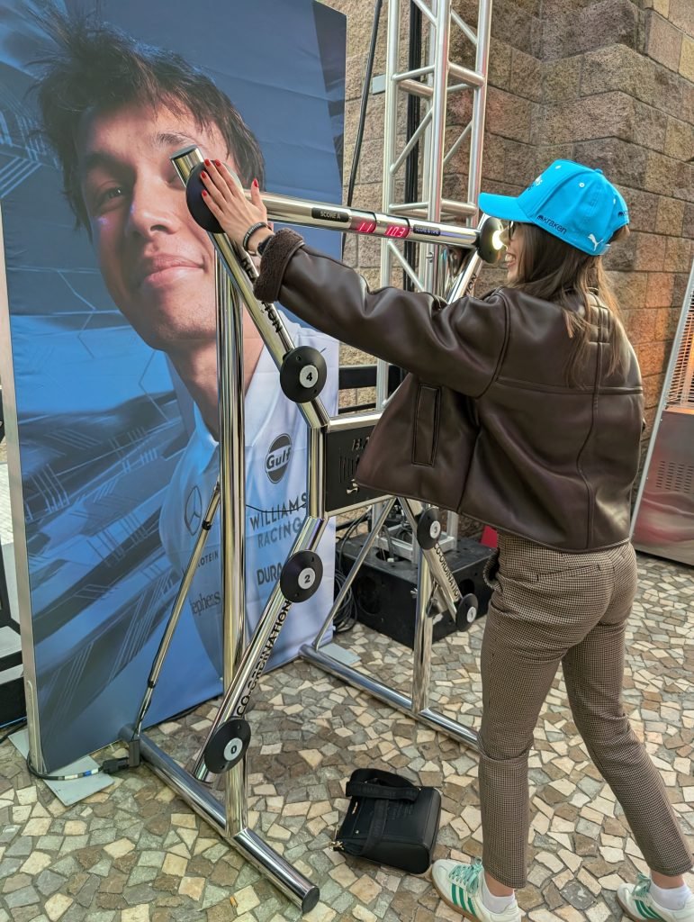 Then we enjoyed the final practice session and settled in for qualifying. Whilst it wasn’t a great weekend for Williams it was still incredible to appreciate the sheer speed of F1 cars down the straight. As the top 3 parked up in front of their boards, we went up to the rooftop to take in a view of the drivers getting out of their cars. We then watched the post-qualifying interviews on the big screen from the rooftop. Another goody bag was handed to us as we left with more merch and a miniature helmet which was by far my favourite gift from the trip – it looks so adorable in my office and is a fantastic reminder of the insane experience we enjoyed.